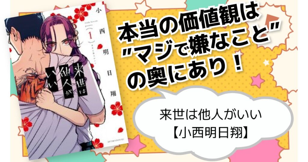 本当の価値観は”マジで嫌なこと”の裏側にあり!「来世は他人がいい」小西明日翔